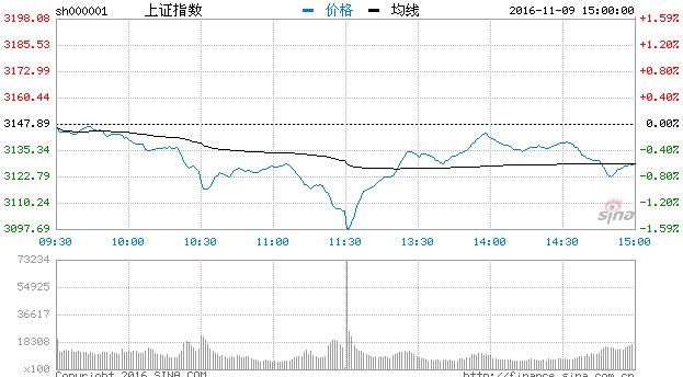 新浪財經訊 11月9日消息,A股上演終極大反轉,早盤受美國大選的波及,兩市盤中一度大跌,午后開盤一度跌破3100點關口,最大跌幅1.6%,但這不能對A股反彈形成任何阻礙,隨著煤炭、一帶一路等權重板塊崛起,滬指快速收復失地,后進入平穩震蕩,臨近尾盤,隨著美國大選的塵埃落定,市場再度小幅下挫,后企穩。