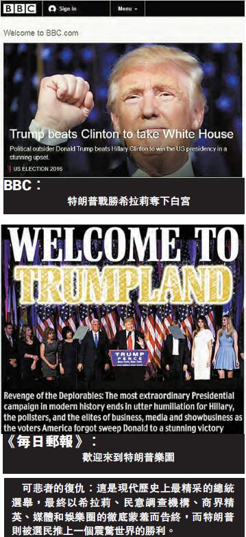 美國總統大選結果震撼了世界。美國主流媒體和選前的各項民調普遍看好希拉莉,然而選民用選票表達了不同聲音。其實特朗普從參選一開始便被定性成為大嘴、鼓吹異端邪說者、很不靠譜的人。但這樣的人最后竟然成為美國總統,美國賓夕法尼亞州天普大學非洲裔研究系教授蒙泰羅解讀稱,特朗普取得的成功,其實是「工人階層對統治階層的反抗」。美國布魯金斯學會學者韋斯特則稱,特朗普的獲勝讓專家們感到震驚,經濟前景不佳的白人藍領和鄉村人口踴躍投票是特朗普獲勝的一大原因,他們普遍認為美國一直處在錯誤的方向。