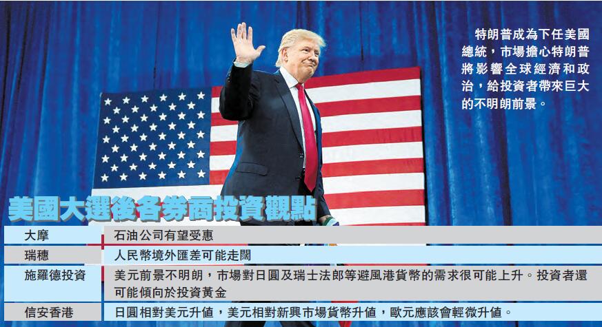 此外,受美國大選的影響,美元疲軟,帶動人民幣走強。不過,市場還是預計在內地經濟放緩的大環境下,人民幣仍有可能有回落壓力。