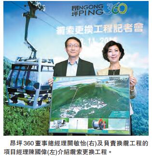 【香港商报网讯】记者周伟立报道:昂坪360昨日公布,明年1月起更换全长约14公里长的承托缆,预料工程於明年6月上旬完成,费用为8000万元,昂坪栈道亦於工程进行期间暂停开放,而昂坪市集则如常开放,相信来年农历新年期间,市民及旅客只能乘搭巴士到昂坪游玩。