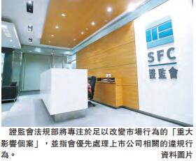 證監會法規執行部執行董事魏建新表示,香港為一個國際金融中心,且市場環境越來越復雜,為提高調查速度,故證監會法規部將專注於足以改變市場行為的「重大影響個案」,他表示上任后會優先處理上市公司相關的違規行為,如企業欺詐及瀆職個案等,認為有關行為嚴重損害香港的聲譽。證監會又將調查更多IPO保薦人,甚至可能會追究相關公司及高層的責任。