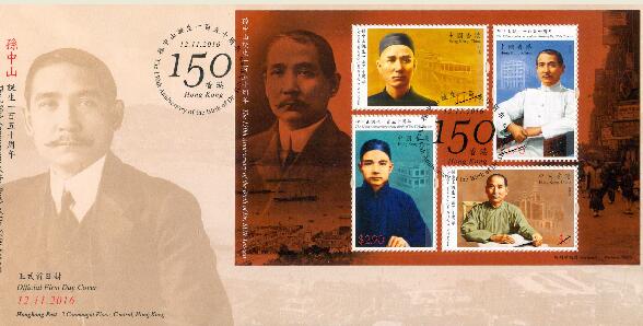 11月10日,香港邮政在记者会表示,中国邮政、香港邮政和澳门邮政12日将共同发行一款纪念套摺。纪念套摺内附小全张乙张,嵌有三地邮政发行的整套“孙中山诞生一百五十周年”邮票。