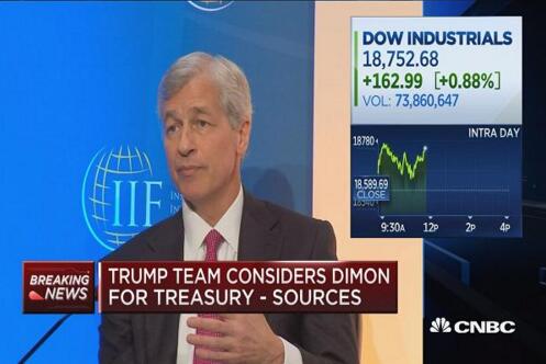 據CNBC報道,美國新任總統特朗普的高級顧問表示, 正在考慮讓摩根大通首席執行官戴蒙(Jamie Dimon)出任下一任美國財政部部長。然而,特朗普的首個政府人事任命或被“怒拒”,戴蒙本人隨后對媒體表示,他對這一職位并無興趣。