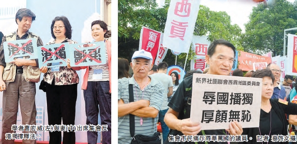 從事社區工作的何小姐及蘇小姐指出,梁、游二人在宣誓當日的表現非常不當,所以出席集會表達意見。他們強調香港是中國的一部分,又表示香港人作為中國的一分子,不應該有「港獨」思想及意念提出,又相信大部分年輕人都不會同意「港獨」的想法。他們又認為,議會是一個莊嚴及受尊重的地方,不應該說出辱華言論及粗言穢語,並指梁、游二人的行徑非常幼稚。他們希望二人的議員資格被取消,因不知道二人會否在議會內作進一步激烈行動。