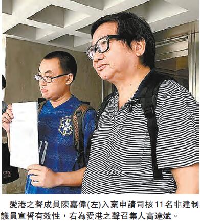 【香港商報訊】再多5名議員被入稟申覆核宣誓有效性,愛港之聲召集人高達斌昨陪同組織成員到高等法院入稟,挑戰11名非建制議員的宣誓有效性,包括:羅冠聰、梁國雄、陳志全、邵家臻、朱凱迪、鄭松泰,及未曾被入稟挑戰的張超雄、尹兆堅、林卓廷、黃碧雲及鄺俊宇。