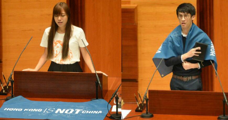 梁、游两人10月12日在理应庄严的宣誓仪式上发表辱华言论,宣扬“港独”,被秘书长裁定无效。特首梁振英和律政司其后入禀高等法院,就梁君彦容许两人再宣誓的裁决提出司法覆核。在法院审理司法覆核案期间,全国人大常委会主动对基本法第104条进行释法,规范宣誓形式。政府在补充陈词中指,根据释法,梁颂恒及游蕙祯是拒绝及忽略宣誓,议员资格已被取消,立法会主席梁君彦无权再为两人监誓,要求法庭宣告梁、游两个立法会议席悬空。