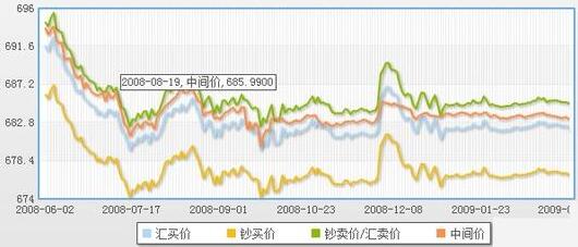 100美元兌人民幣匯率走勢圖