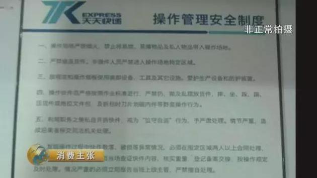 天天快遞掛在牆上的操作管理安全制度的第一條明確規定:操作現場嚴禁煙火,禁止將易燃易爆物品及私人物品帶入操作場地。既然有明文規定,為什麼這位分揀員不遵守呢?