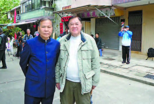 村中仗著蔡根培(右)、現任村長梁國輝對村中事務瞭如指掌。