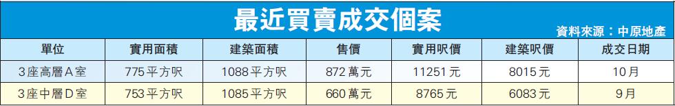 買賣成交方面,屋苑交投較為疏落,中原地產資料顯示,今年截至上月止,屋苑僅錄不足10宗買賣成交個案,其中上月全月僅錄1宗交投,個案來自3座高層A室,實用面積775平方呎,建築面積1088平方呎,成交價為872萬元,實用呎價約11251元。