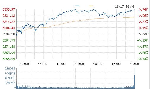 道指收漲35.68點,或0.19%,報18903.82點;標普500指數漲10.18點,或0.47%,報2,187.12點;納指漲39.39點,或0.74%,報5333.97點。