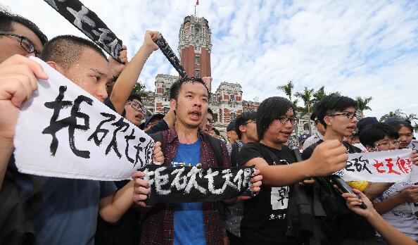 面对劳基法修正草案再进一步,青年团体约20多名成员在18日上午,突袭蔡英文官邸,并在陈抗区静坐抗议。