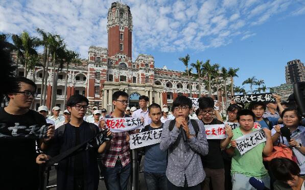 青年团体不满劳基法修法草案初审通过,7天假被砍,18日上午前往台湾地区领导人蔡英文官邸陈抗,当局回应,尊重不同意见表达。