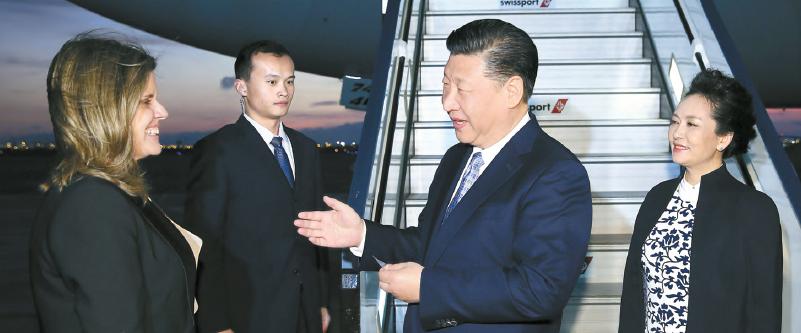 習近平主席於當地時間18日晚上6時20分許乘坐專機抵達利馬空軍基地,受到秘魯副總統阿勞斯等熱情迎接。