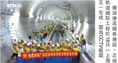 【香港商報網訊】據中央電視台昨晚報道,通車日期一再延遲的廣深港高鐵香港段正線軌道鋪設工程,於前日(18日)完成,上行和下行的正線軌道全線貫通。