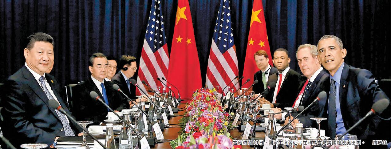 在與奧巴馬會晤時,習近平積極評價奧巴馬為發展中美關係所做的努力。習近平指,「這是我們今年第三次會晤,也是3年多來第九次會晤。我們就事關中美關係發展的戰略性、全局性問題多次深入交換意見,達成廣泛共識,特別是決定共同努力構建中美新型大國關係,引領中美關係取得重要積極進展。」
