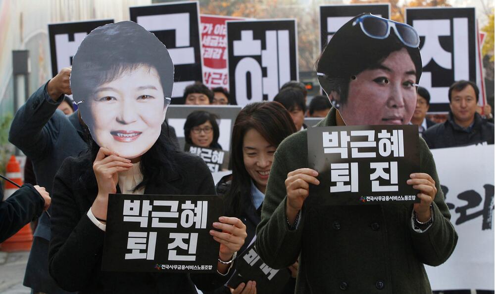 韓聯社報道,包括在野黨6大潛在總統候選人在內的8名在野黨大老,昨日在國會召開緊急會議,包括共同民主黨前黨魁文在寅、國民之黨前黨魁安哲秀、首爾市長樸元淳、忠清南道知事安熙正、共同民主黨議員金富謙、城南市市長李在明、國民之黨前黨魁千正培、正義黨黨魁沈相?出席了是次會議,並達成一份協議書。協議書指出,總統樸槿惠犯罪事實明確而重大,已具備被彈劾的條件。