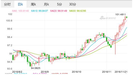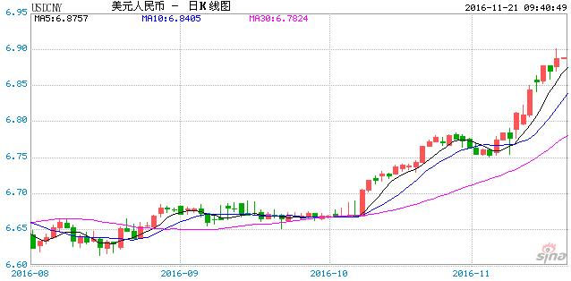 分析人士認為,當前人民幣的持續貶值,或許是在提前消化美聯儲12月的加息預期。受聯儲官員升息言論和特朗普新政刺激經濟預期支撐,上周五,美元指數(101.1302, -0.1779, -0.18%)觸及101.48,為2003年4月初以來最高。上周四美聯儲主席耶倫釋出強有力的信號,暗示美國下月可能加息。周五又有美聯儲的一眾官員附和耶倫的升息言論,再度支撐了美元。另外,除了今年12月這一時點,還有一個重要時間關口是2017年1月20日特朗普上任。