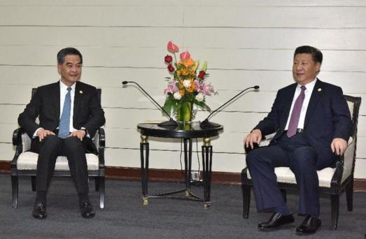 行政長官梁振英在秘魯利馬與國家主席習近平會面。新華社引述習近平指,中央充分肯定行政長官和特區政府的工作,希望梁振英領特區政府管治團隊繼續施政,堅決維護國家統一,保持社會政治穩定。