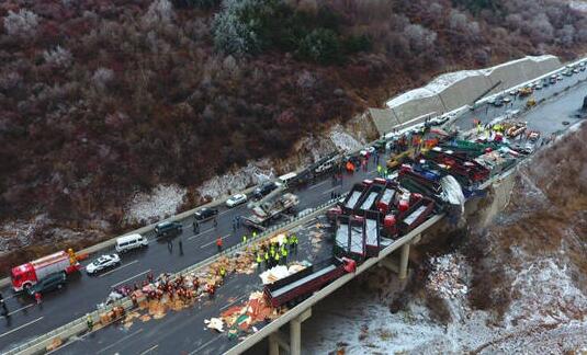 事故发生后,山西省有关部门和地方政府立即启动应急响应,公安、交警、消防、交通、医疗等救援力量迅速赶赴现场全力以赴实施救援。目前,现场救援基本结束,事故原因正在进一步调查中。经全力救治,37名伤员生命体征平稳,公安交警和交通运输部门正加紧清除障碍、融雪除冰,力争尽快恢复通车。