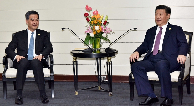 【香港商報网訊】記者戴合聲報道:當地時間20日,國家主席習近平在秘魯首都利馬出席亞太經合組織(APEC)峰會期間接見行政長官梁振英,兩人會面約45分鐘。習近平指出,中央政府充分肯定行政長官和特區政府的工作,希望梁振英帶領特區政府管治團隊,繼續綜合施策,廣泛凝聚社會共識,著力推動經濟發展和民生改善,堅決維護國家統一,保持社會政治穩定。兩人會面后,梁振英會見傳媒時引述習近平提及人大釋法必要性,習主席表示十分清楚及了解香港情況,并強調在「一國兩制」下無「港獨」的空間,香港要依法辦事。