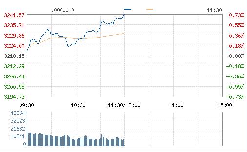 今日兩市高開后震蕩攀升,滬指漲近1%,煤炭、鋼鐵等權重股領漲,截至午間收盤,滬指漲0.73%報3241點,深成指漲0.41%報10944點。