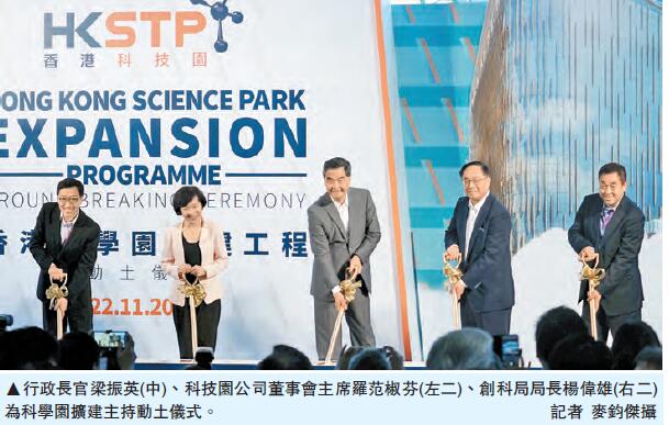 香港科技園公司年初獲政府支持,推行44億元的擴建項目,於科學園第3期西面增建2座科研大樓,並在昨日舉行動土儀式。擴建項目佔地1.18公頃,將興建2座分別為14及15層高的科研大樓,預計於2020年落成,屆時將為園區增加約74000平方米的科研辦公室空間,為創科人才提供更多協作空間,以支持本港的創新及科技生態圈持續蓬勃發展。
