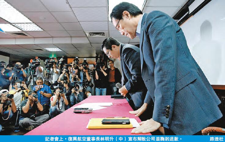 【香港商報网訊】停航一天的臺灣復興航空,昨日上午召開臨時董事會通過解散決議,并於下午召開記者會宣布解散。董事長林明升表示,由於財務狀況惡化,將退出臺灣航空業,即日起全面停航。這代表成立65年的臺灣第三大航空公司走入歷史。