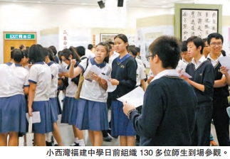 小西灣福建中學組織130多位師生到場,領隊老師說,孫中山先生在中國歷史的地位舉足輕重,適逢孫中山誕辰150周年,故利用周會時段,帶同學生前來學習。就讀香港大學一年級的陳小姐表示,高中讀中史科時已十分欣賞孫中山先生,她支持中國歷史成為必修課,因要了解自己的國家民族,才會對自身中國人身份有歸屬感。
