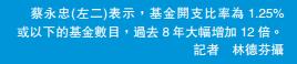 蔡永忠又指出,在投資回報一樣的情況下,如基金開支比率愈低,基金的回報率就愈高,但強調市民在選擇強積金基金時,除了考慮費用,亦要考慮受託人服務水平等不同因素。他認為,強積金收費中有大部分是行政費用,包括用追收拖欠供款及向監管機構提交報告等,因此認為收費難與一般投資性基金相比。