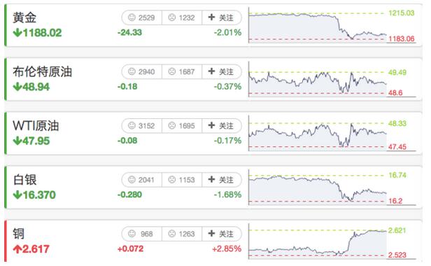 今日,油價小幅下跌。黃金大跌2%,至每盎司1188.02美元。