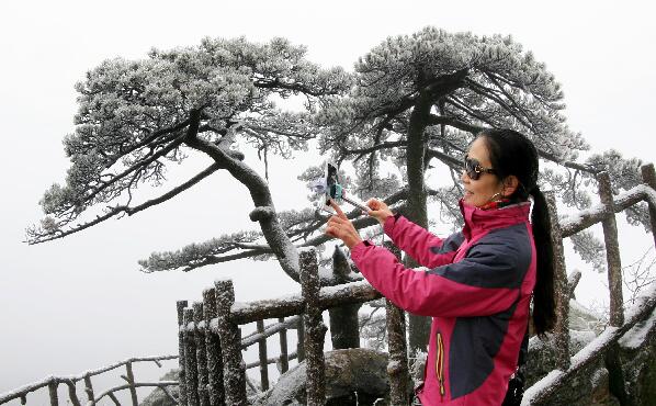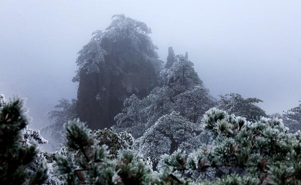 安徽黃山風景區迎來降雪。雪後的黃山一片銀裝素裹,美不勝收。