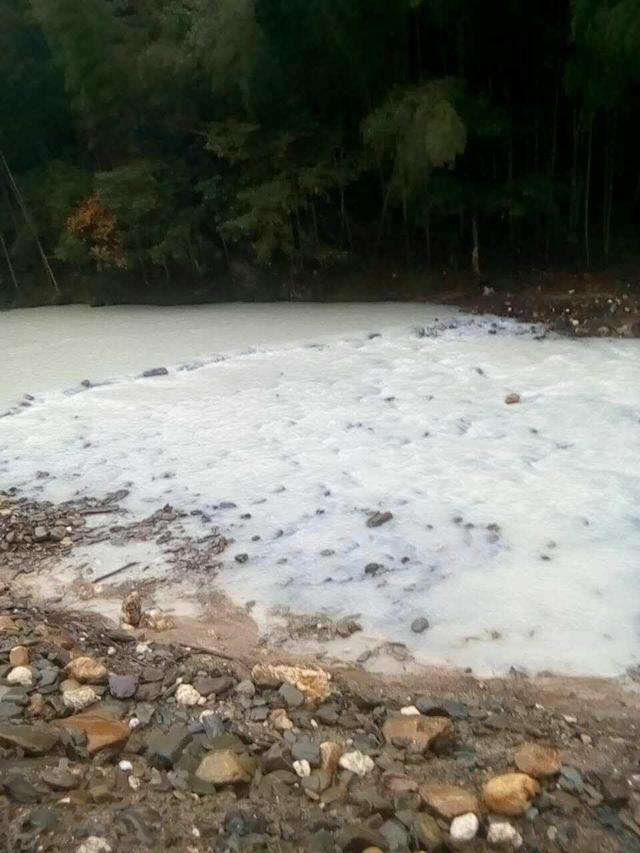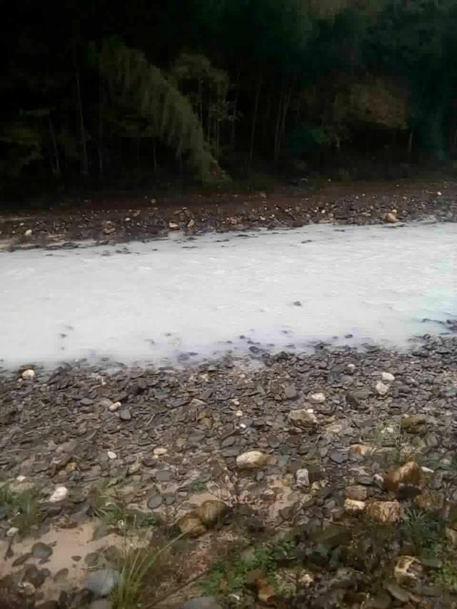 從網友提供的照片看到,原本清澈見底的河流變得異常渾濁,呈白色泥漿狀。(來源:京華時報)