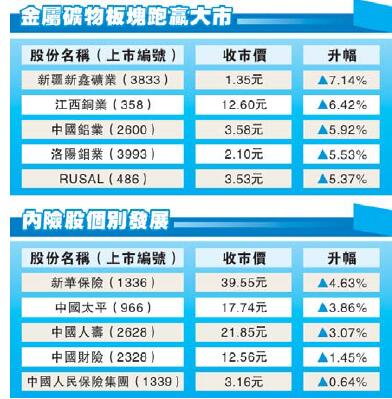 恒指昨低開101點后跌幅逐步收窄,惟收市仍失守20天線22621點,并為兩連跌。國指則升12點,收報9678點,主板成交跌至558億元。金屬礦物板塊錄得1.6%升幅,表現顯著跑贏大市;濠賭股有追捧,金沙中國(1928)升近2%報38.65元。內險股個別發展,中國人壽(2628)升3%報21.85元,為升幅最大藍籌,中國平安(2318)則跌0.4%報42.35元。產油國11月30日就凍產進行會議,惟市傳各產油國仍未有達成共識的跡象。紐約期油跌至日內低位,每桶報47.84美元,跌約0.24%。