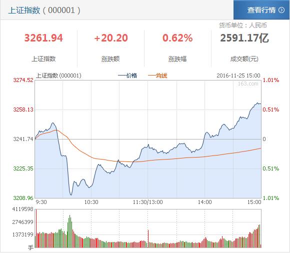 截至收盤滬指報3261.94點,漲0.62%。深成指報11036.5點,漲0.63%。