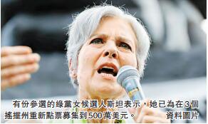 斯坦的目標是籌募700萬美元(5460萬港元)推動重新點票,至今已籌得超過500萬美元(約3900萬港元)。綠黨表示,若今次籌得的款項有剩餘,會用來爭取改革美國的選舉制度。據悉,威斯康辛長期以來一直是民主黨的票倉。特朗普在威斯康辛州的勝利打破了民主黨人32年來的不敗歷史,而在密歇根州,共和黨候選人自1988年來也還從來沒有在這裏贏過。值得注意的是,選前民調預測希拉莉會在賓州、密歇根與威斯康辛等州穩操勝算,更有高達19項民調指特朗普在威州毫無機會。