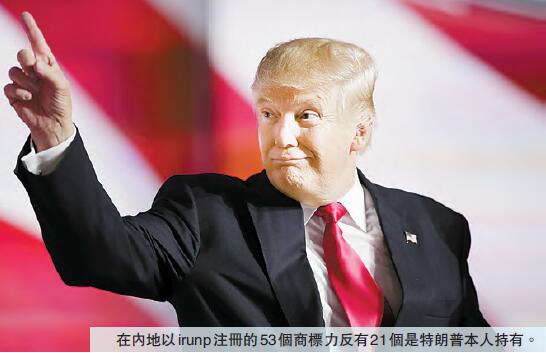 據中國國家工商行政管理總局的商標註冊資料,在中國以Trump註冊的53個商標之中,僅有21個是特朗普本人持有的,其他以Trump作為商標的企業,包括有房地產中介公司、投顧公司、水族用品業者、食品工廠,化工公司等,涉及的商品有彈藥、炸藥、撲克牌、網球拍,甚至有保險套和馬桶!其中一些還是最近才註冊的。