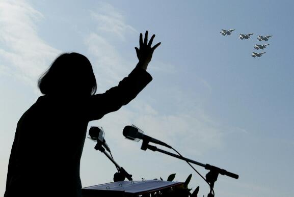 蔡英文26日到空军台中清泉岗基地观摩飞行演练。中央社