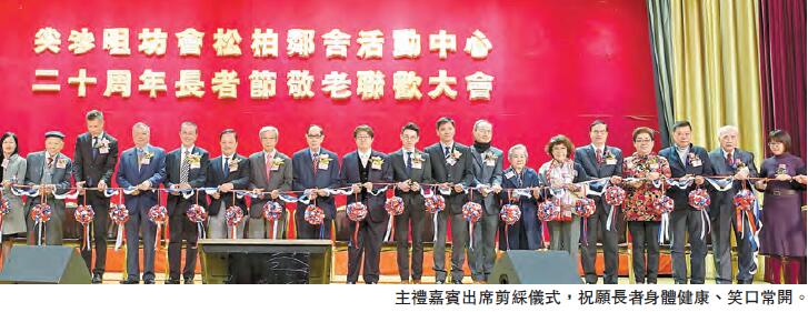 【香港商報網訊】記者吳韻玲報道﹕「尖沙咀街坊福利會松柏鄰舍活動中心20周年長者節敬老聯歡大會」日前假尖沙咀會堂舉行,勞工及福利局副局長蕭偉強出席主禮,約數百名嘉賓、長者歡聚一堂,場面熱鬧。為表揚義工的貢獻,大會向數十名義工頒發嘉許狀,該會理事長蘇仲平及監事長林祖光獲頒發義工金獎。