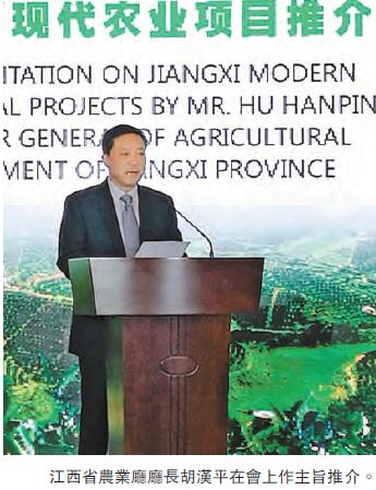 會上,江西省農業廳廳長胡漢平對江西現代農業作了主旨推介。他表示,綠色是江西的「主色」,也是江西農業的「底色」,綠色發展的因子已經深深植入江西老表的血脈,發展綠色生態農業已經成為廣大農民群眾的一種行為習慣。