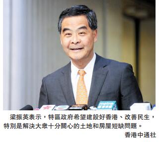 对於问责官员及行政会议成员有可能辞职参选特首,会否对政府运作带来影响,梁振英表示,有关辞职问题是假设性问题,不作回答。他说,特区政府与香港社会有共同愿景,在各方面建设香港、发展经济、改善民生,尤其解决房屋问题,当局未来3至4年可以落成的私人住宅单位达9.3万个,较4年前他上任时大幅度增加46%,预计私楼在未来18个月可继续维持高产量。