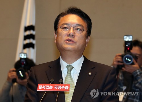韩国执政党新世界党党鞭郑镇硕(图片来自韩联社)
