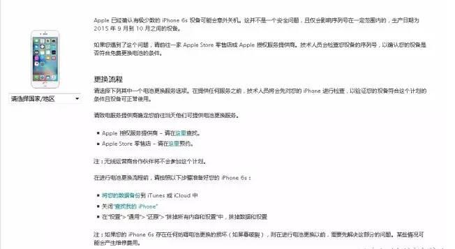 11月21日,蘋果公司公告稱“已經確認有極少數的iPhone 6s設備可能會意外關機。這并不是一個安全問題,且僅會影響序列號在一定范圍內的,生產日期為2015年 9 月到 10 月之間的設備。”并給出了一個免費更換電池的方案。