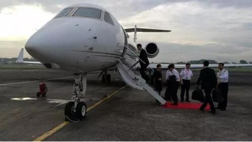 5時45分趕往機場,早上7時,登上了他的私人飛機。