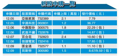 本周還將有8隻新股發行,主板有5隻,創業板有2隻,中小板1隻。8隻新股累計發行數量共計約3.39億股,預計募集資金金額共計47.86億元。