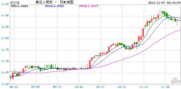 12月7日消息,早間中國外匯交易中心發布公告,人民幣(6.8879, 0.0089, 0.13%)匯率中間價報6.8808,較前一交易日貶值233個基點,為近四周來最大降幅。