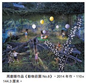 英國作家喬治奧偉爾的經典之作《動物莊園》描繪生活中的荒謬之處,引人深思。台灣藝術家周慶輝以此為靈感,拍攝「人的莊園」系列,描繪身體、生活和社會環境三個框架,反應現代社會環境下的模式化生活。作品以布置舞台劇場景的方式,結合室內環境及自然情境,仔細呈獻每個角落的情境,詮釋「社會是一個籠子,而我們都笑著看他人關在里面」,帶出與觀者之間強烈的共鳴。文:涼
