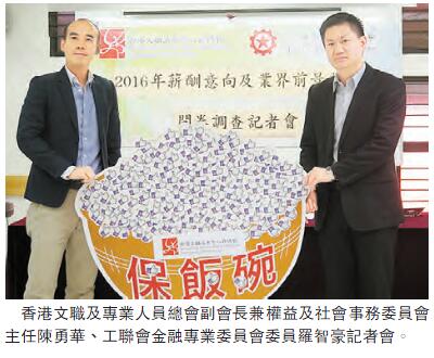 打工仔能否保得住飯碗,成為大眾擔憂的問題。2016年度本地生產總值(GDP)下降0.4%,為5年以來最大降幅。經濟下滑對各行各業影響開始浮現,部分大型銀行如豐銀行和東亞銀行分別傳出凍薪及裁員的消息。工聯會金融專業委員會聯同香港文職及專業人員總會於2016年10月至11月期間合作進行「2016年薪酬意向及業界前景發展問卷調查」,希望了解金融業內本年度的薪酬改變幅度以及文職白領在面對經濟前景不明朗的情況下所受到的影響,收集相關意見并向特區政府提出措施及要求。