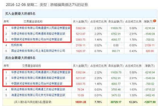 昨日樂視網龍虎榜數據顯示,賣的最多的三家營業部,同時也是買的最多的3家營業部,這三家營業部分別是華泰證券(18.820, 0.01, 0.05%)南通通州人民路營業部、華泰證券南通姚港路營業部、銀河證券臺州營業部。