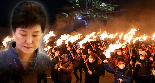【環球時報駐韓國、日本特約記者 陳尚文 王偉 李珍 環球時報記者 崔杰通】“樸槿惠靜靜站立,神情悲戚,她的身旁是涌動而來的人群。夜色下,每個人都戴著白口罩,高舉火把,攥著拳頭。”《韓國時報》網站昨天刊登這樣一幅圖片,預告“周五迎來最后審判日”。